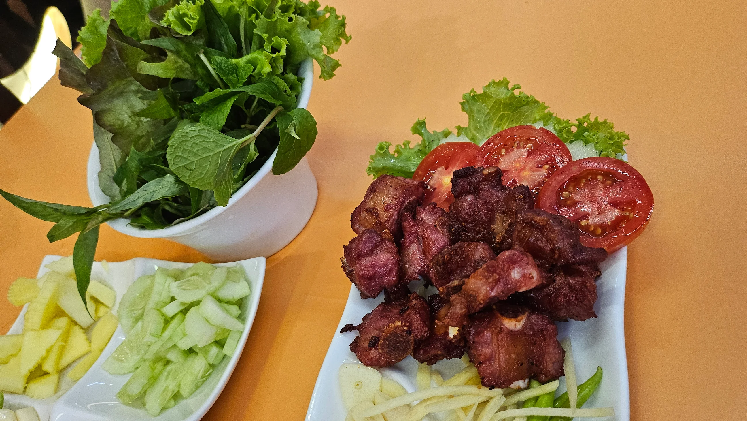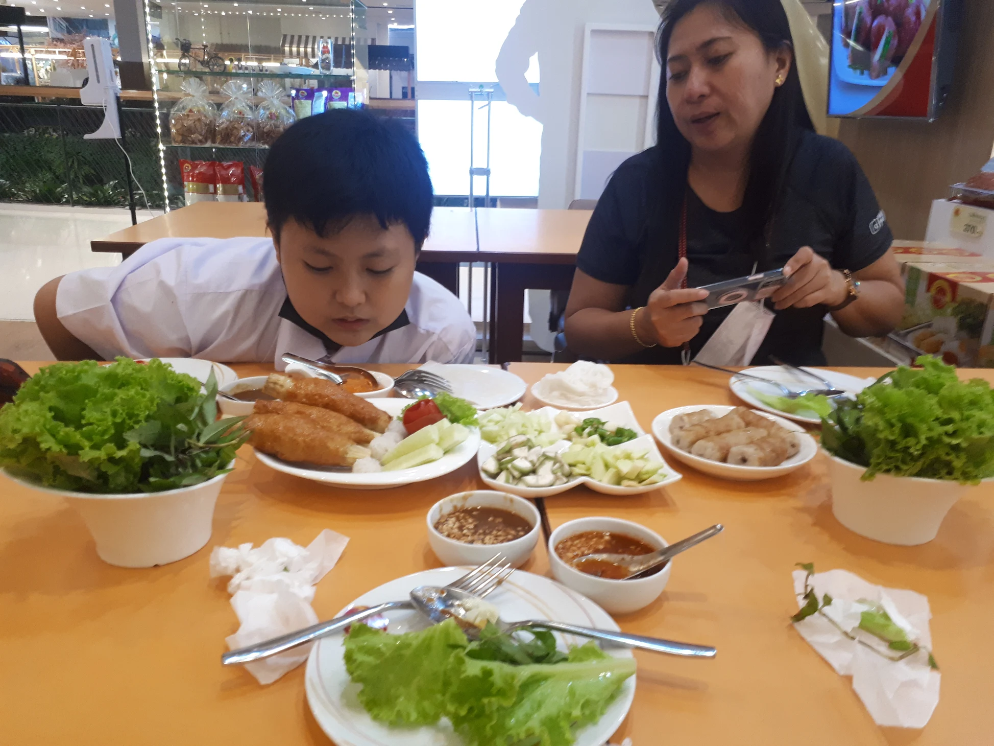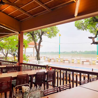 บรรยากาศอันร่มรื่น สวยงามของมนต์เสน่ห์แห่งลุ่มน้ำโขง... ที่ลูกค้าจะได้สัมผัสกับ ที่นั่งริมระเบียง ทอดยาวไปตามริมแม่น้ำโขง บรรยากาศสบายๆ เหมือนกับอยู่บ้าน ท่านจะได้ลิ้มรสแหนมเนือง
