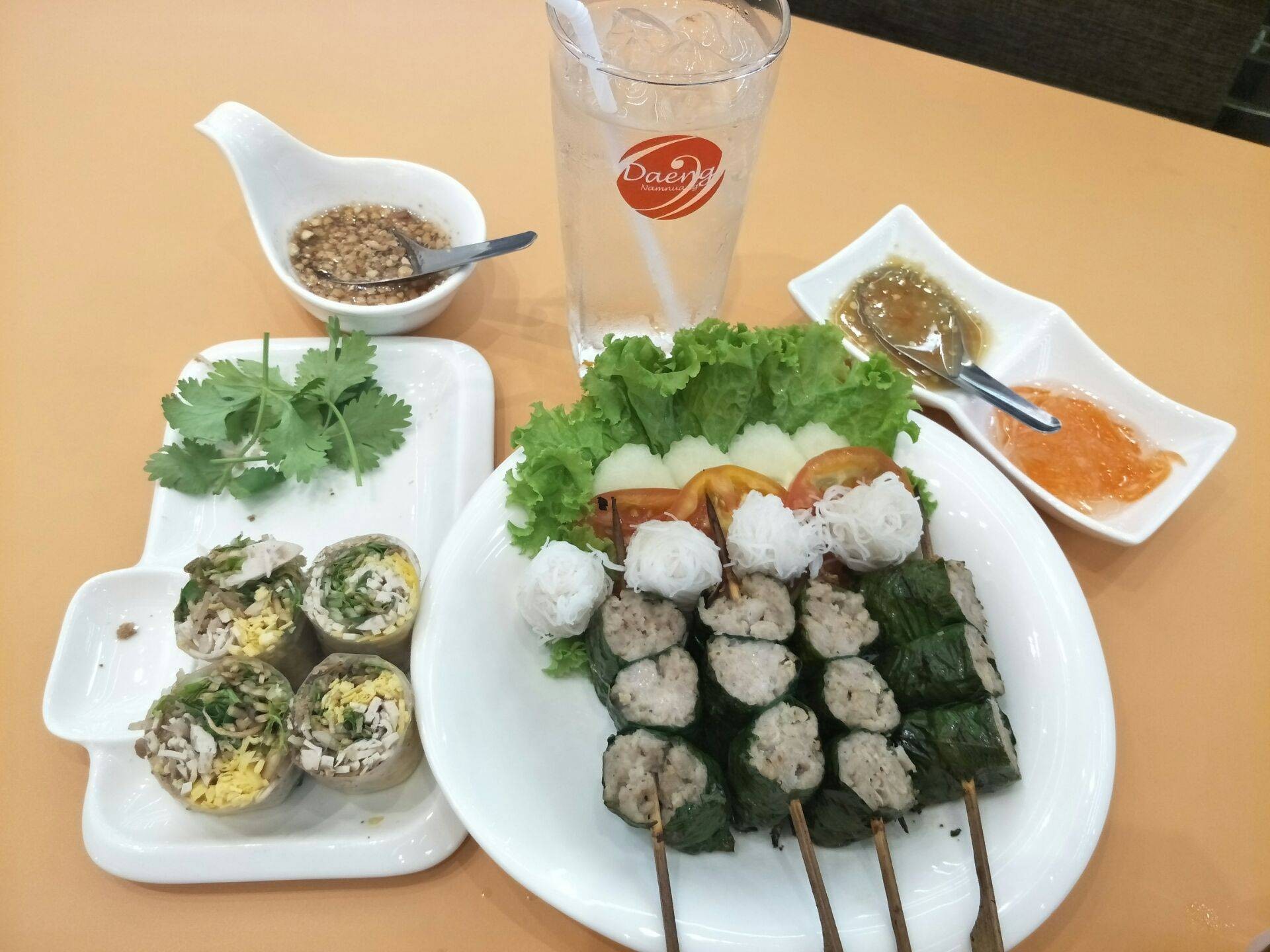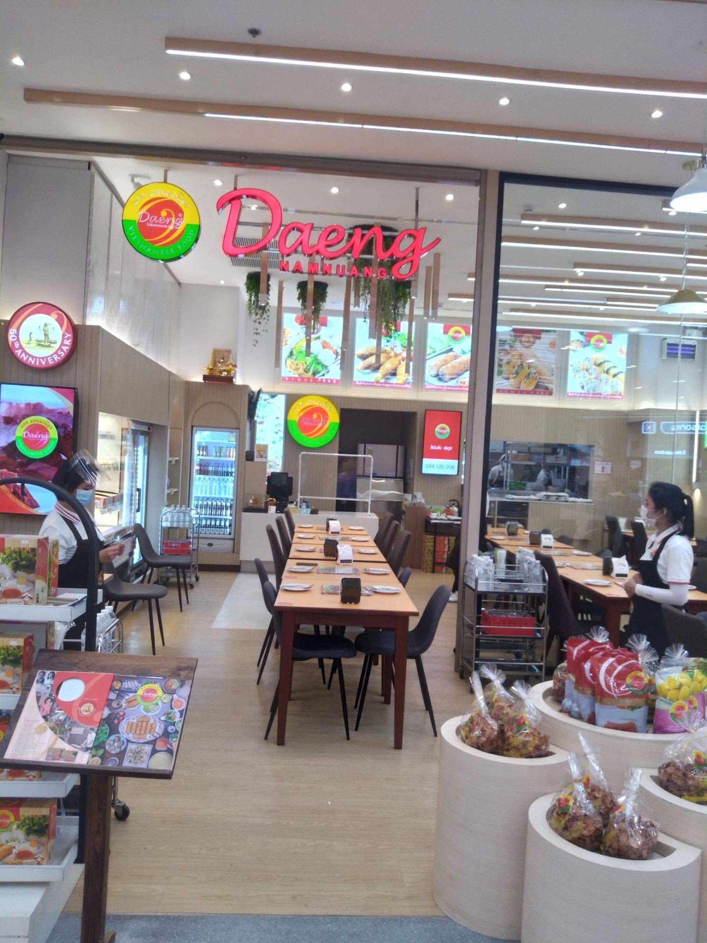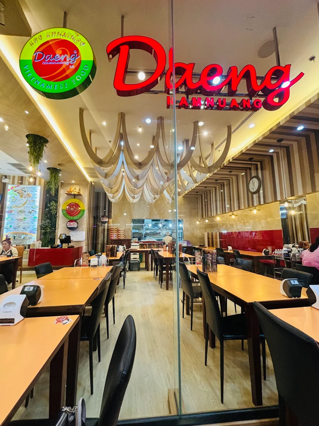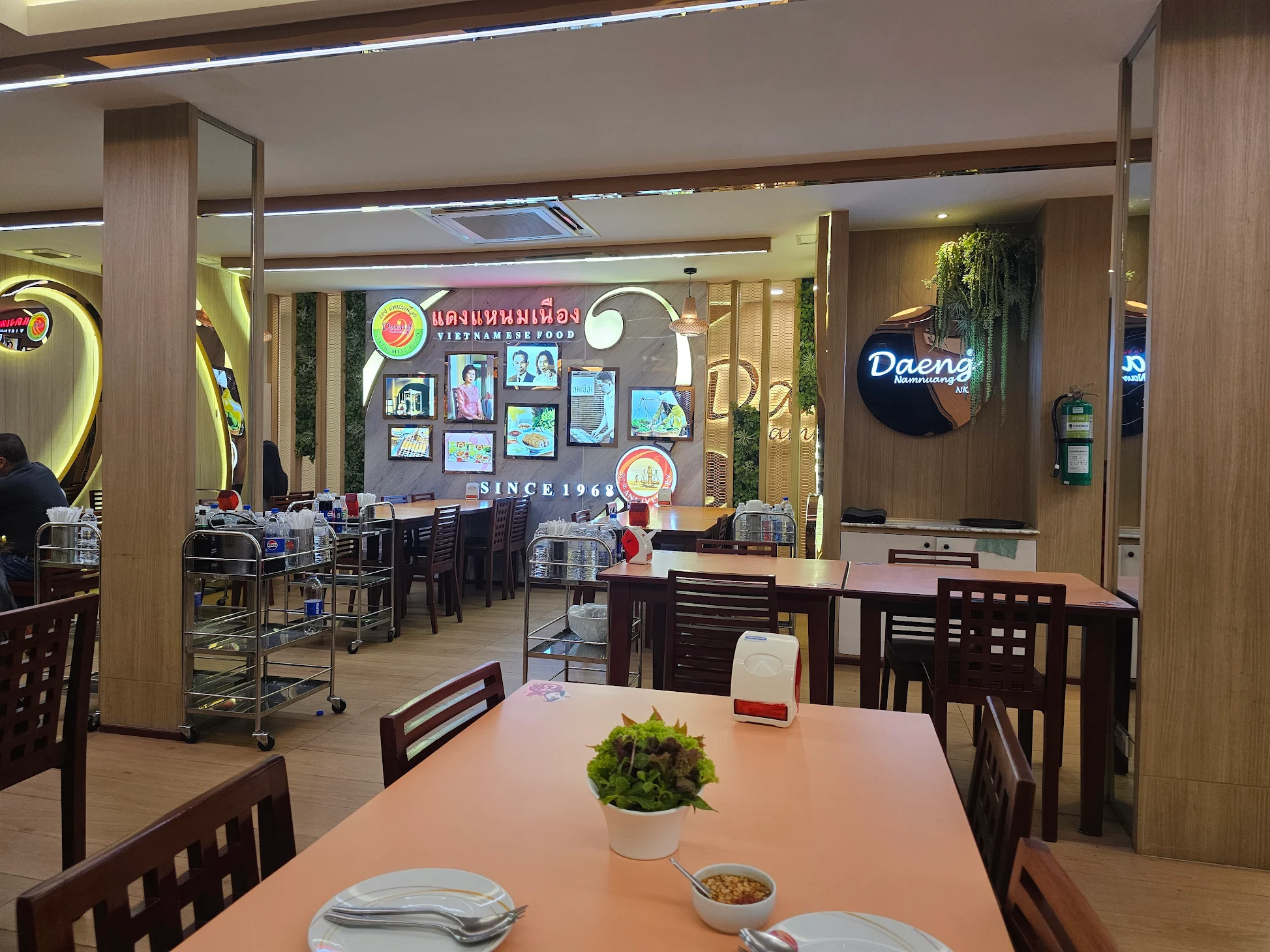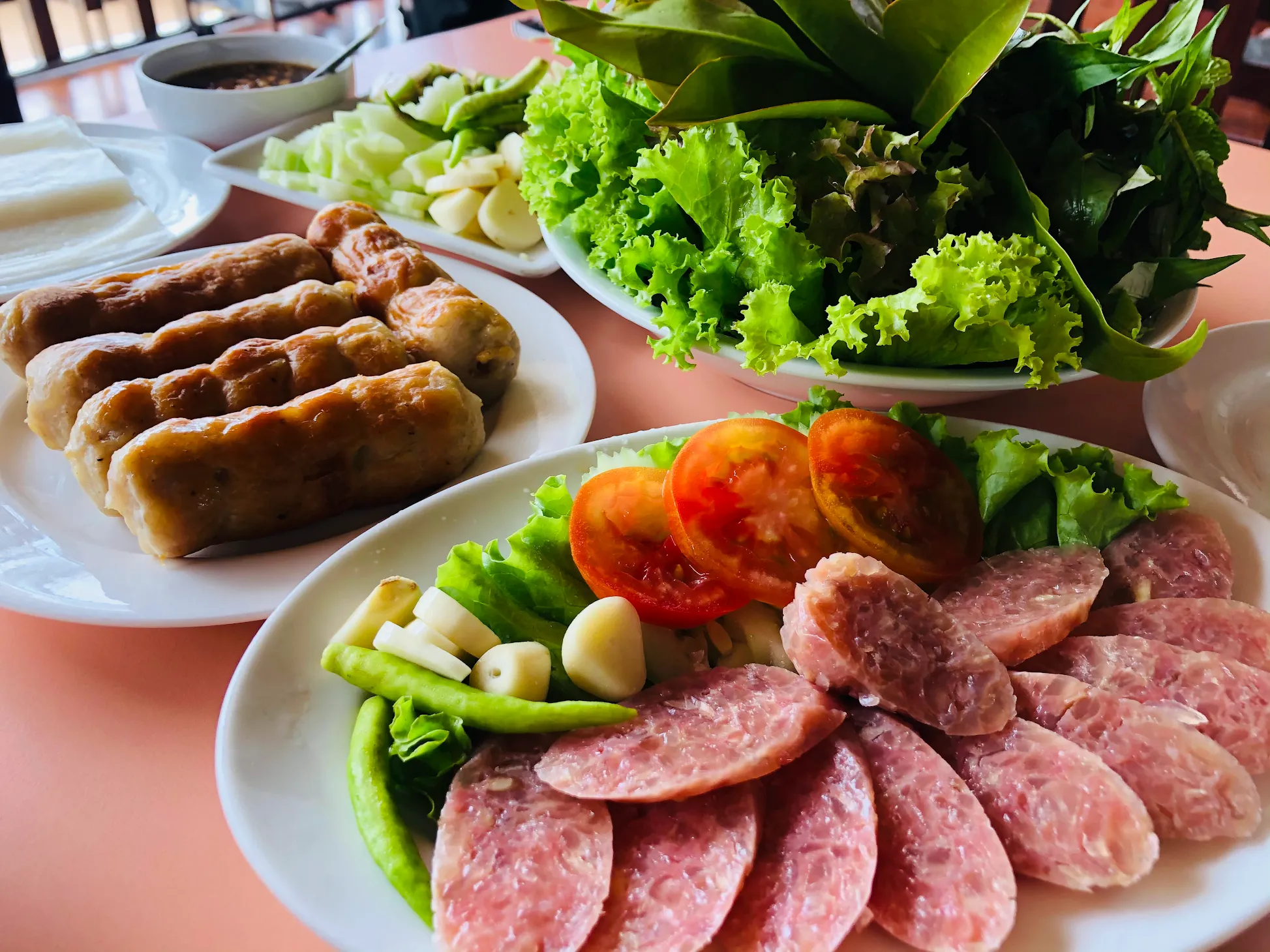 บรรยากาศอันร่มรื่น สวยงามของมนต์เสน่ห์แห่งลุ่มน้ำโขง... ที่ลูกค้าจะได้สัมผัสกับ ที่นั่งริมระเบียง ทอดยาวไปตามริมแม่น้ำโขง บรรยากาศสบายๆ เหมือนกับอยู่บ้าน ท่านจะได้ลิ้มรสแหนมเนือง และอาหารเวียดนามแสนอร่อย และบริการที่เป็นกันเอง พร้อมไปกับนั่งชมทัศนียภาพอันสวยงามของริมฝั่งโขง ที่ร้านแดงแหนมเนือง มีห้องปรับอากาศ ขนาดต่างๆ รองรับการจัดเลี้ยงเป็นหมู่คณะ และกรุ๊ปทัวร์ อีกทั้งยังมีห้องจัดเลี้ยงบรรยากาศส่วนตัว เพื่อรับรองแขกพิเศษในโอกาสต่างๆ อีกด้วย