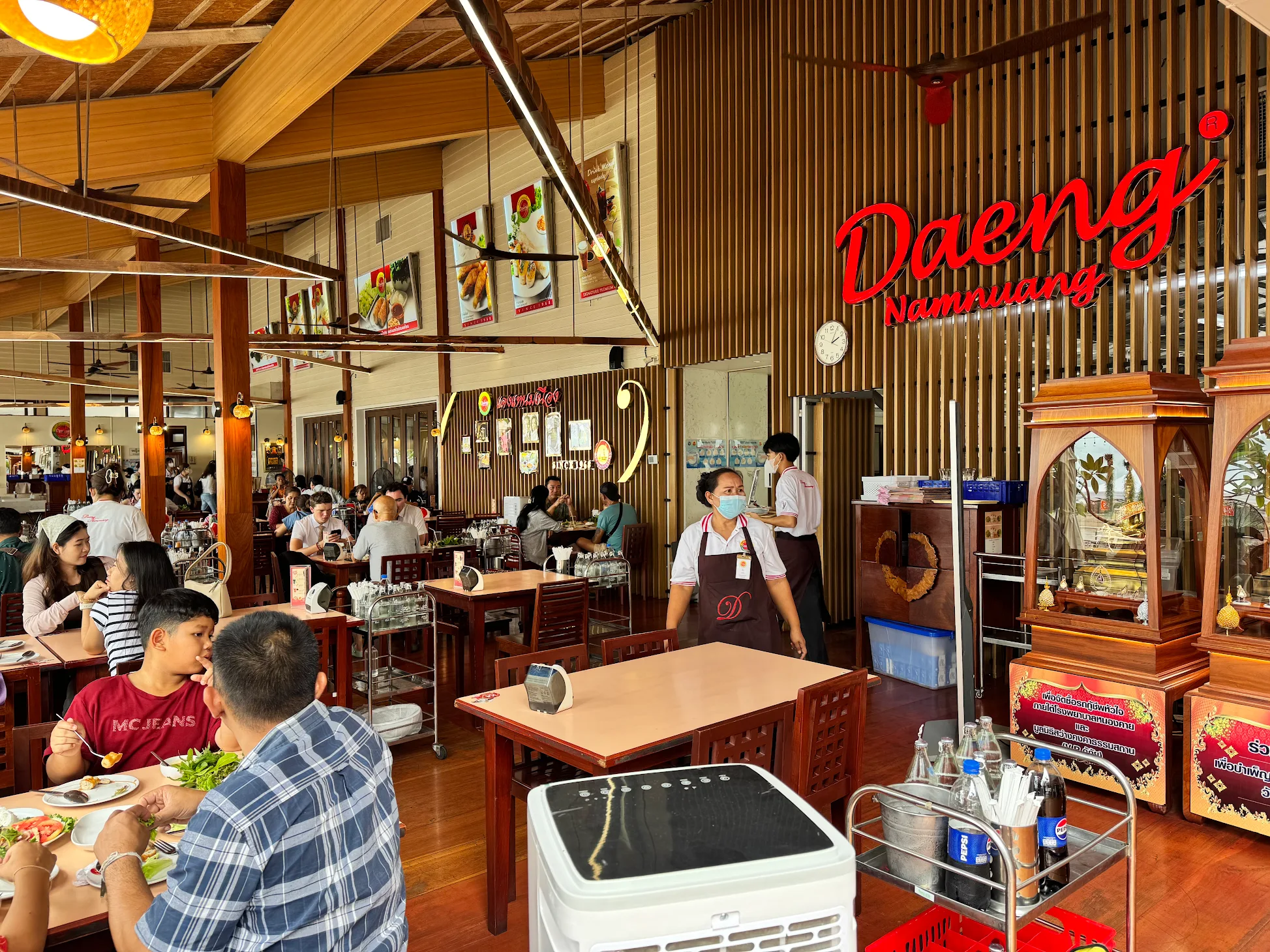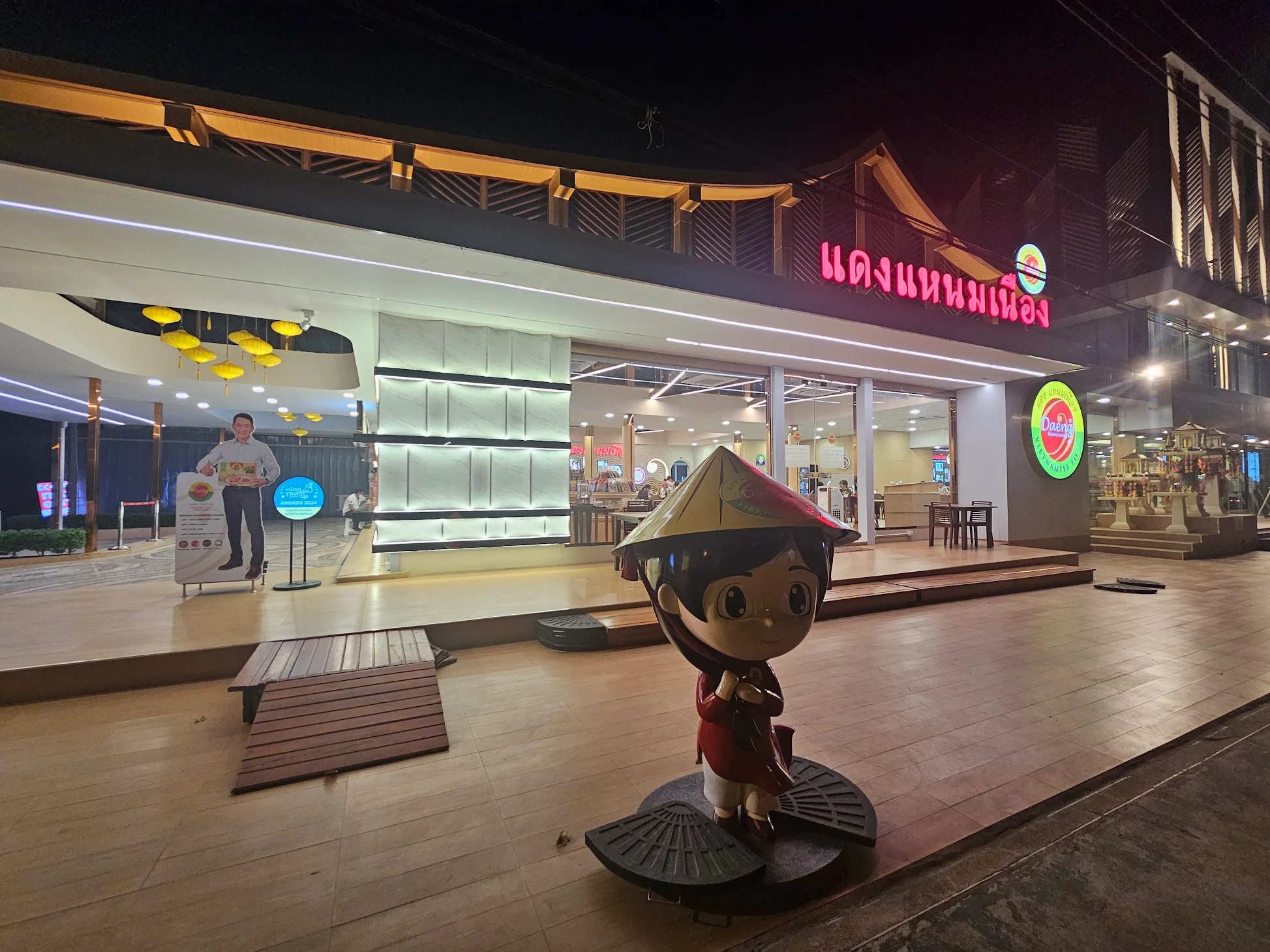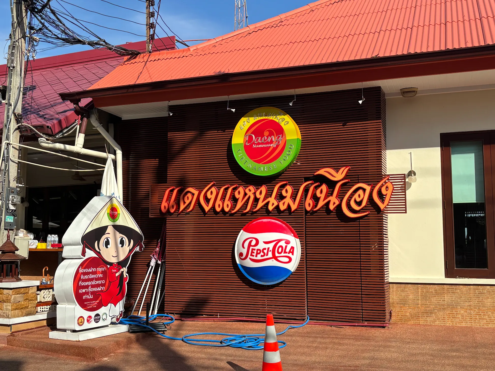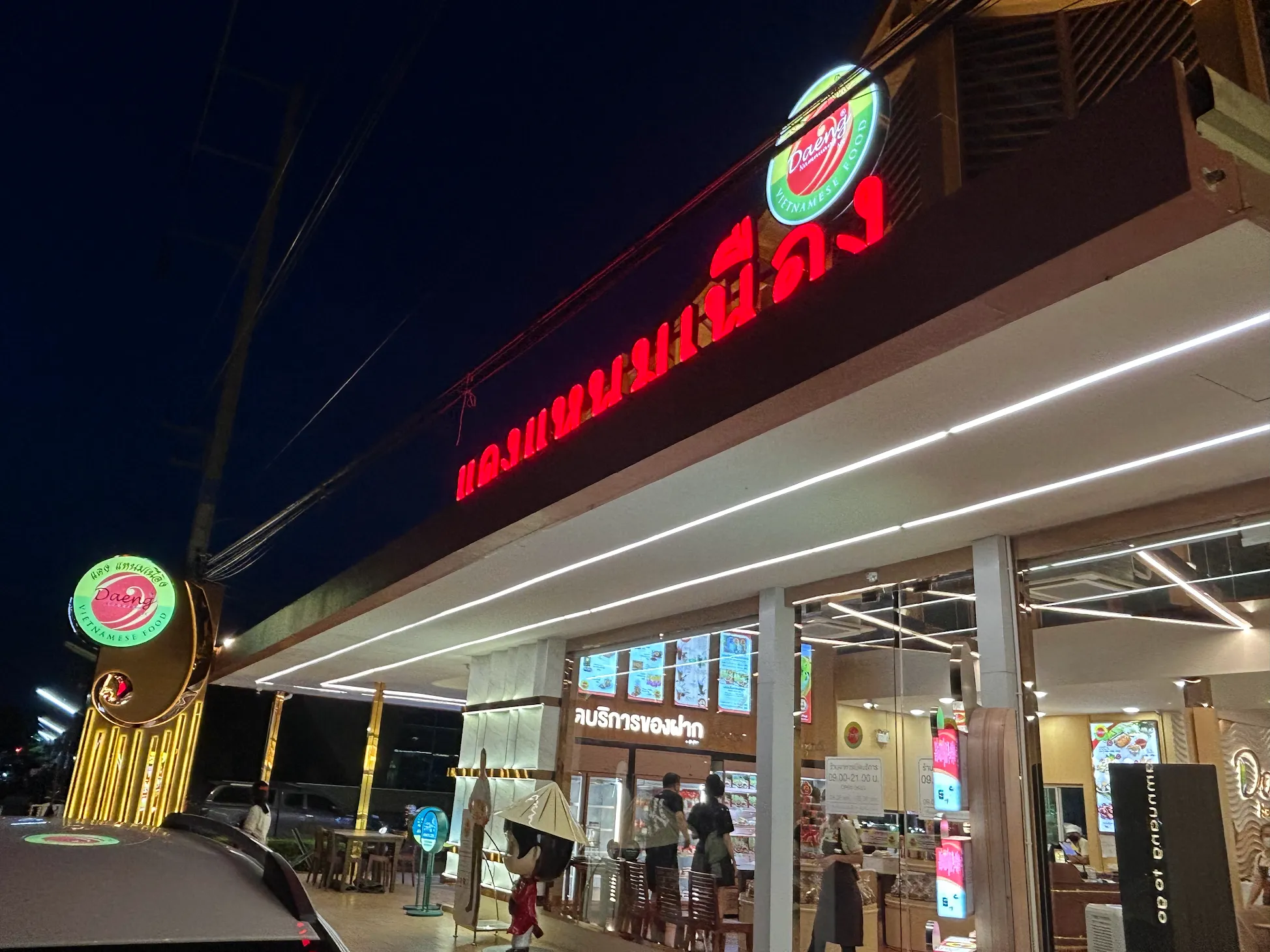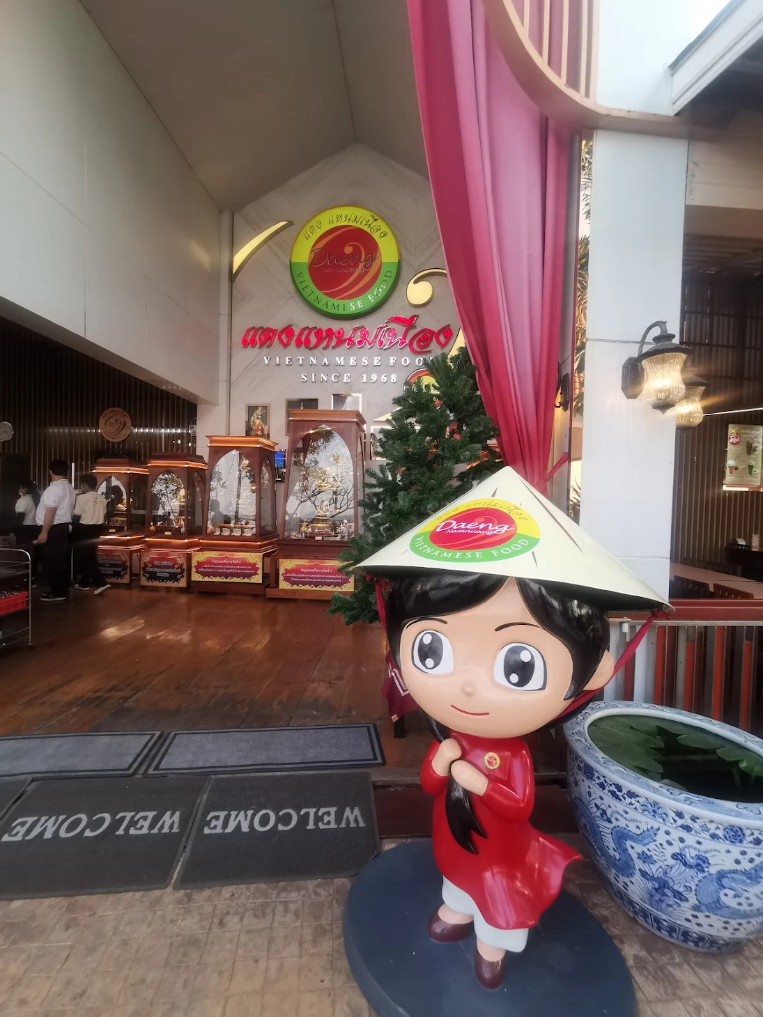 บรรยากาศอันร่มรื่น สวยงามของมนต์เสน่ห์แห่งลุ่มน้ำโขง... ที่ลูกค้าจะได้สัมผัสกับ ที่นั่งริมระเบียง ทอดยาวไปตามริมแม่น้ำโขง บรรยากาศสบายๆ เหมือนกับอยู่บ้าน ท่านจะได้ลิ้มรสแหนมเนือง และอาหารเวียดนามแสนอร่อย และบริการที่เป็นกันเอง พร้อมไปกับนั่งชมทัศนียภาพอันสวยงามของริมฝั่งโขง ที่ร้านแดงแหนมเนือง มีห้องปรับอากาศ ขนาดต่างๆ รองรับการจัดเลี้ยงเป็นหมู่คณะ และกรุ๊ปทัวร์ อีกทั้งยังมีห้องจัดเลี้ยงบรรยากาศส่วนตัว เพื่อรับรองแขกพิเศษในโอกาสต่างๆ อีกด้วย