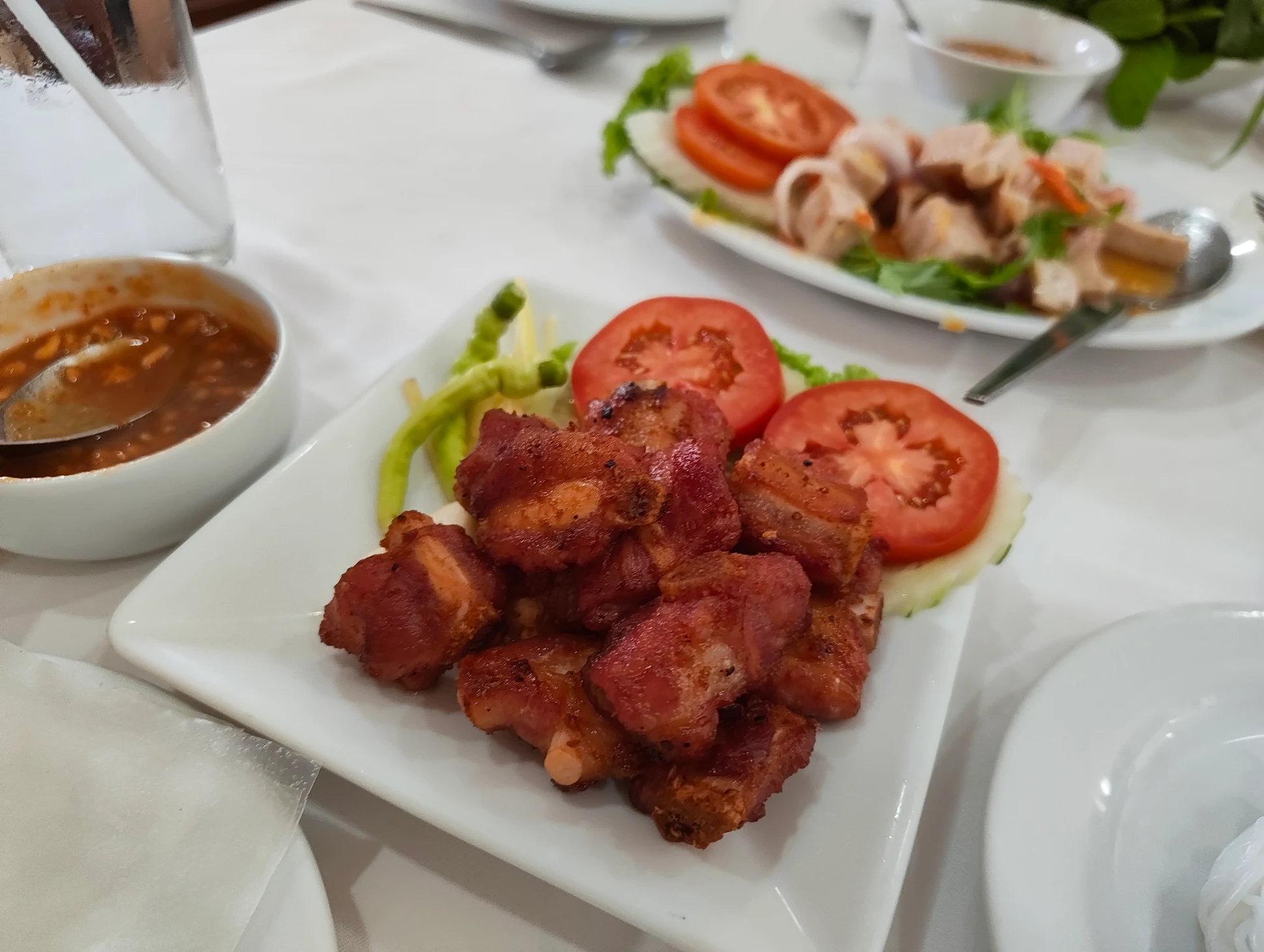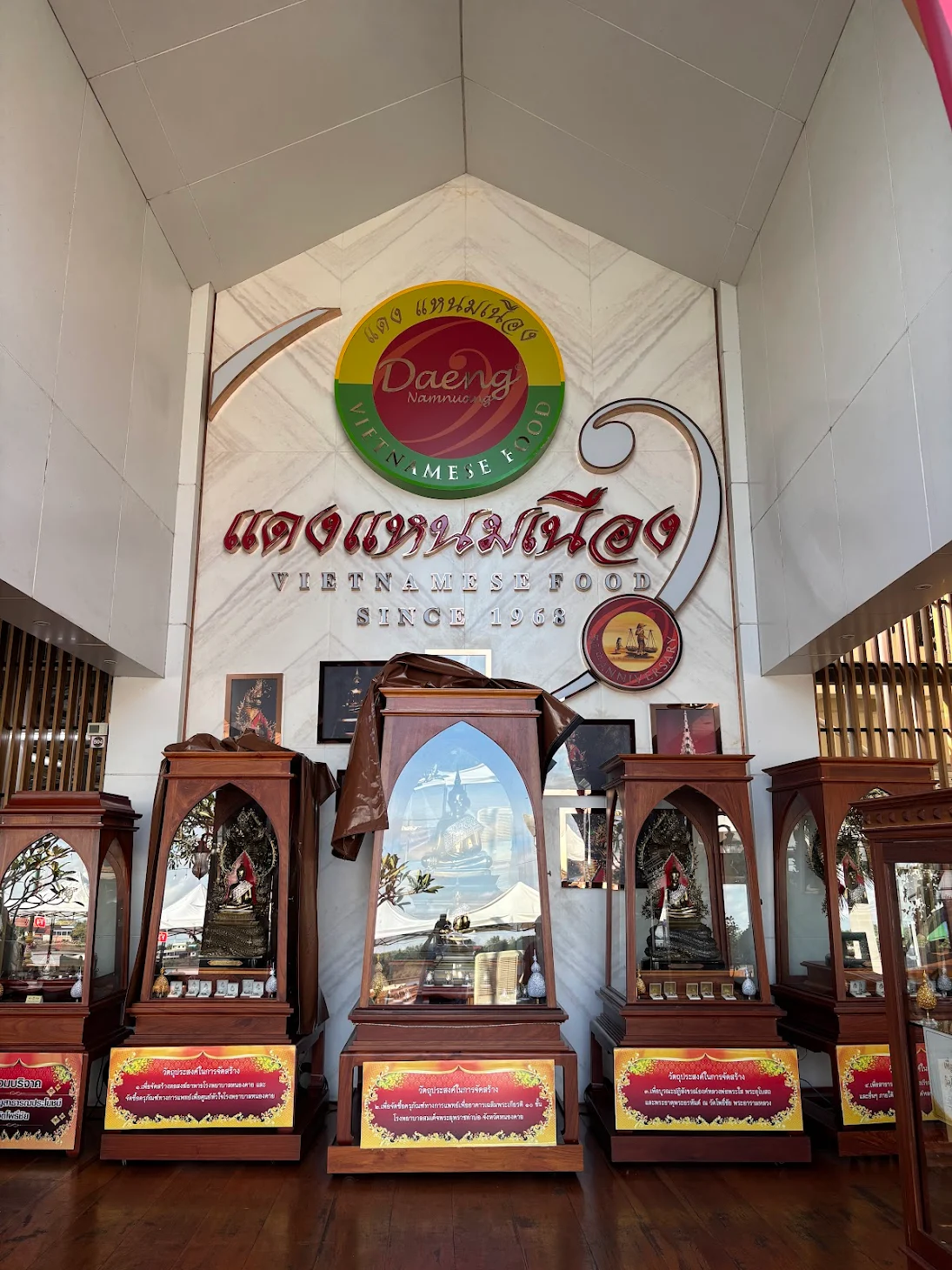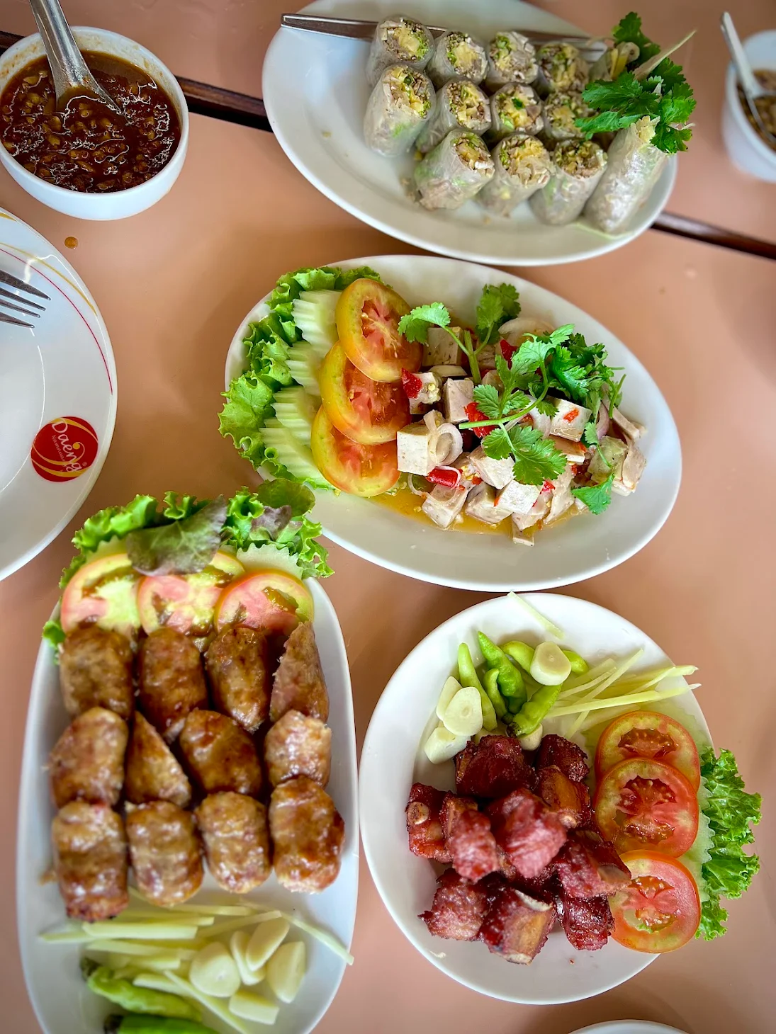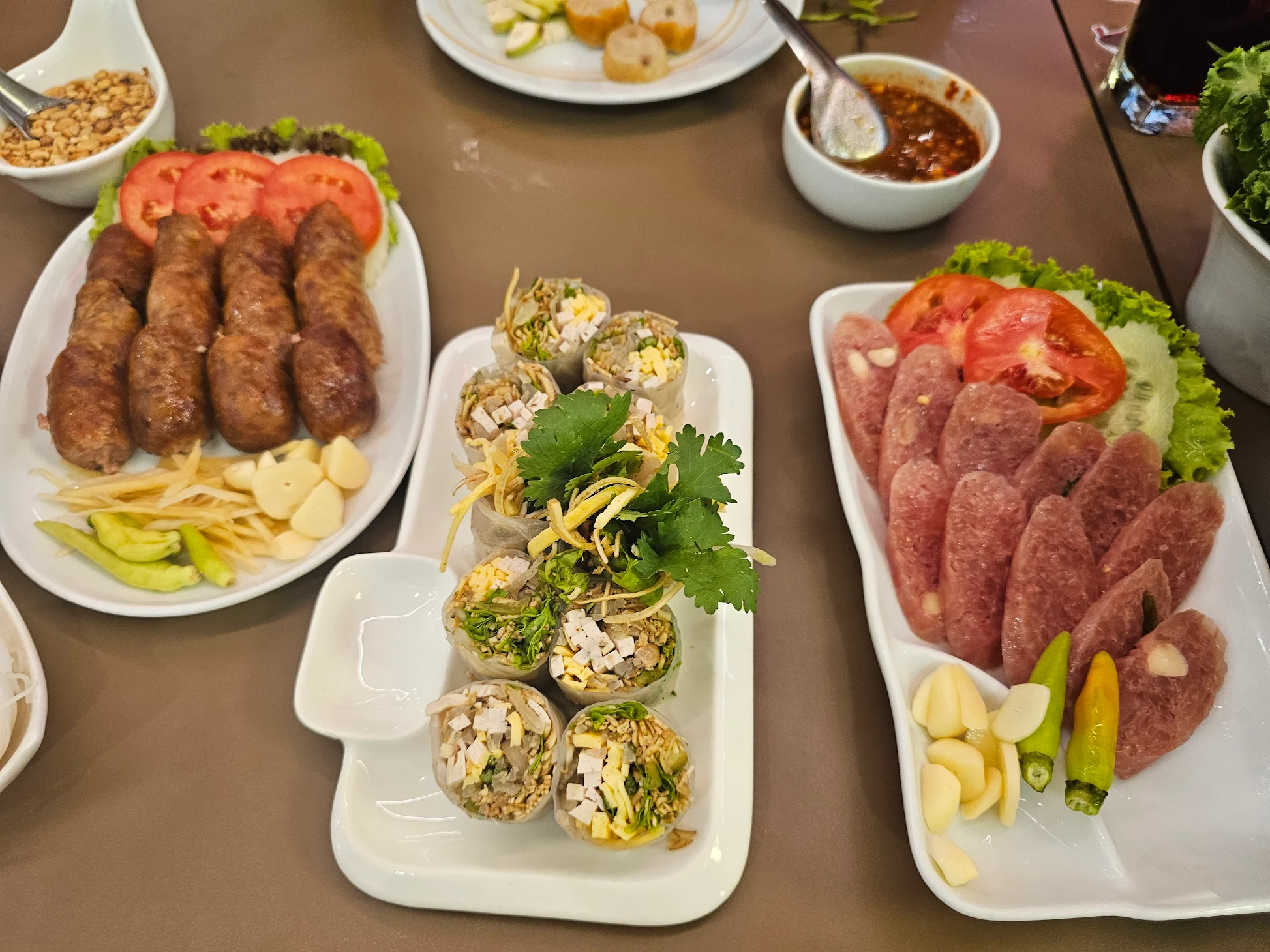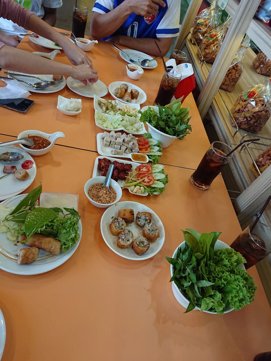 บรรยากาศอันร่มรื่น สวยงามของมนต์เสน่ห์แห่งลุ่มน้ำโขง... ที่ลูกค้าจะได้สัมผัสกับ ที่นั่งริมระเบียง ทอดยาวไปตามริมแม่น้ำโขง บรรยากาศสบายๆ เหมือนกับอยู่บ้าน ท่านจะได้ลิ้มรสแหนมเนือง และอาหารเวียดนามแสนอร่อย และบริการที่เป็นกันเอง พร้อมไปกับนั่งชมทัศนียภาพอันสวยงามของริมฝั่งโขง ที่ร้านแดงแหนมเนือง มีห้องปรับอากาศ ขนาดต่างๆ รองรับการจัดเลี้ยงเป็นหมู่คณะ และกรุ๊ปทัวร์ อีกทั้งยังมีห้องจัดเลี้ยงบรรยากาศส่วนตัว เพื่อรับรองแขกพิเศษในโอกาสต่างๆ อีกด้วย