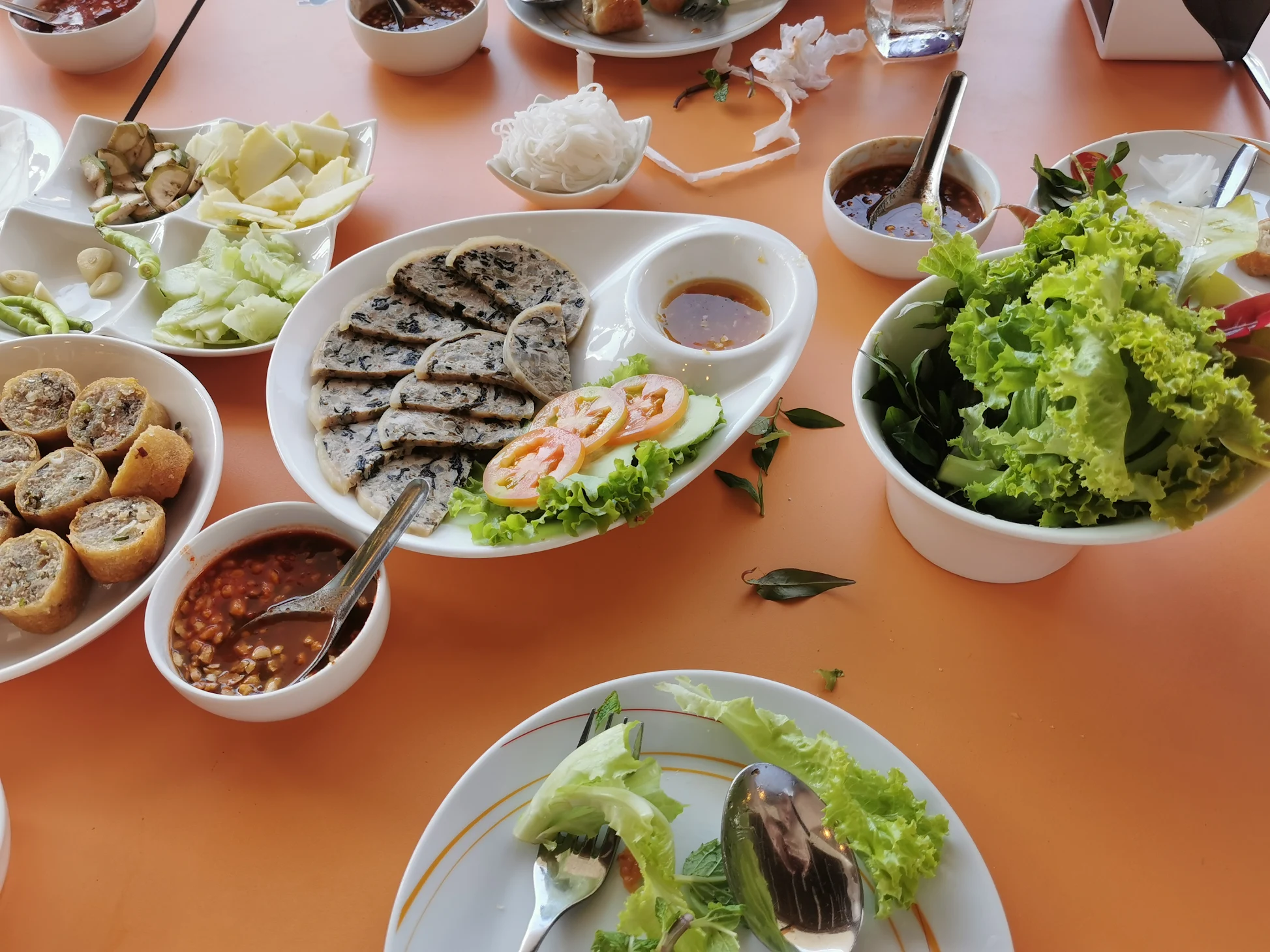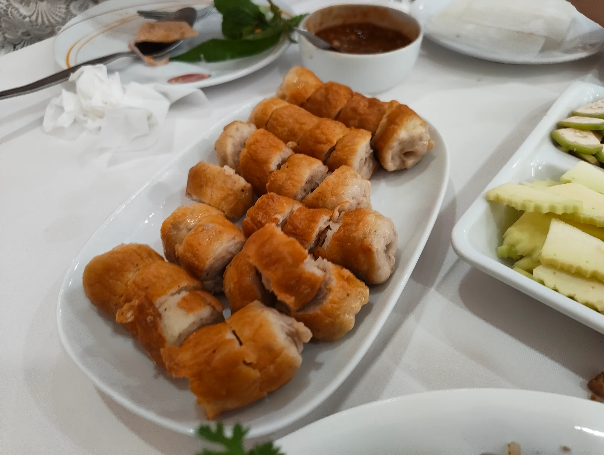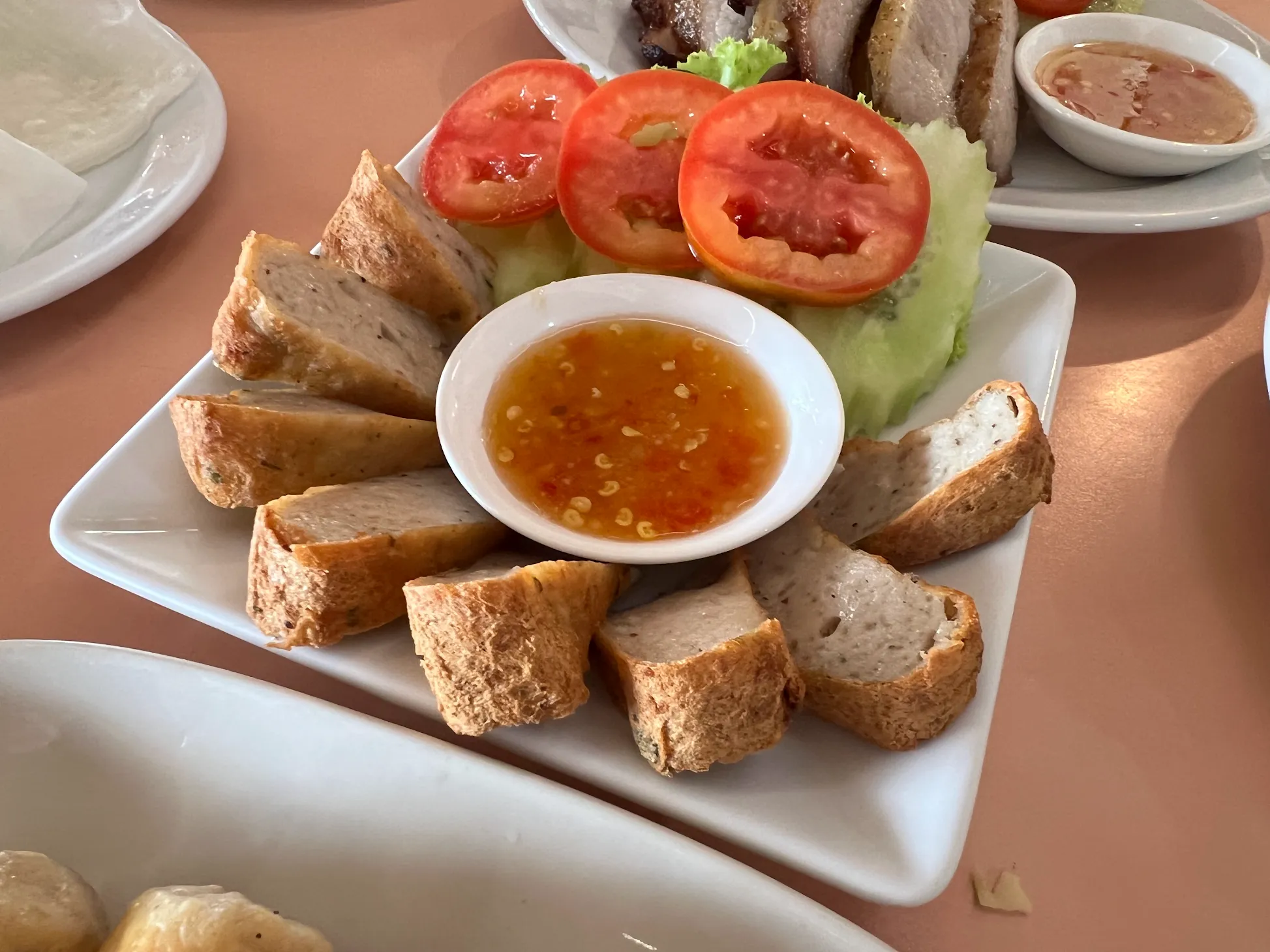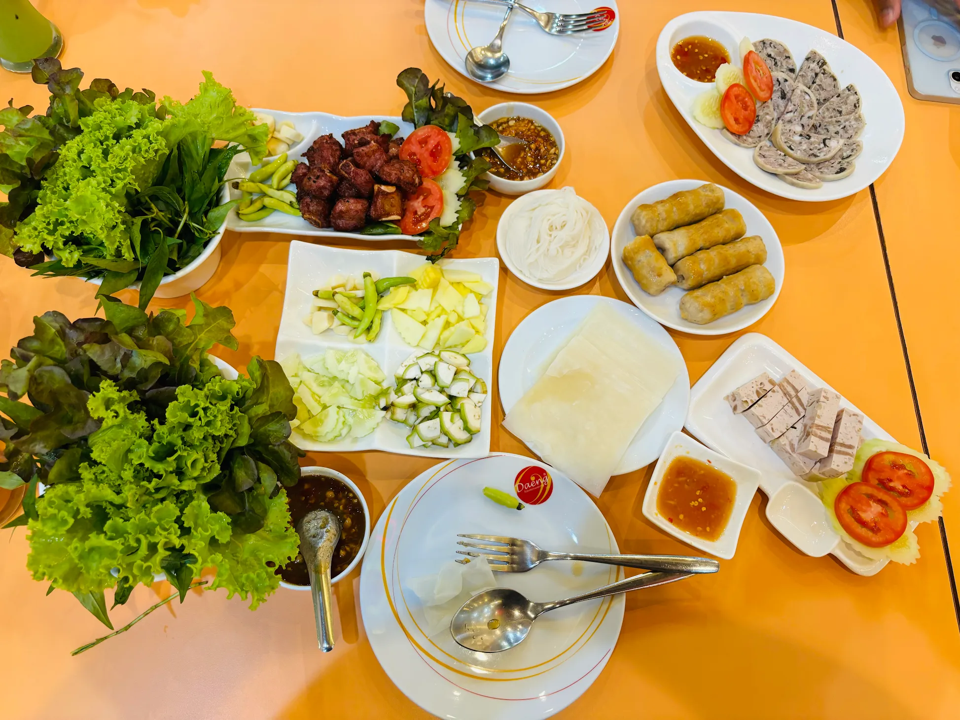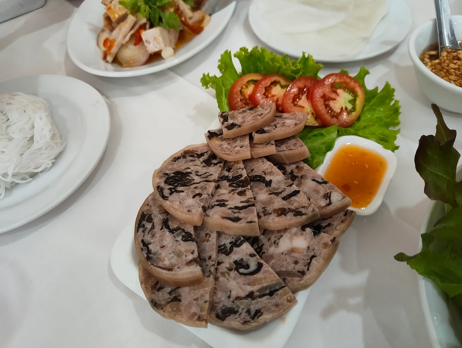 บรรยากาศอันร่มรื่น สวยงามของมนต์เสน่ห์แห่งลุ่มน้ำโขง... ที่ลูกค้าจะได้สัมผัสกับ ที่นั่งริมระเบียง ทอดยาวไปตามริมแม่น้ำโขง บรรยากาศสบายๆ เหมือนกับอยู่บ้าน ท่านจะได้ลิ้มรสแหนมเนือง และอาหารเวียดนามแสนอร่อย และบริการที่เป็นกันเอง พร้อมไปกับนั่งชมทัศนียภาพอันสวยงามของริมฝั่งโขง ที่ร้านแดงแหนมเนือง มีห้องปรับอากาศ ขนาดต่างๆ รองรับการจัดเลี้ยงเป็นหมู่คณะ และกรุ๊ปทัวร์ อีกทั้งยังมีห้องจัดเลี้ยงบรรยากาศส่วนตัว เพื่อรับรองแขกพิเศษในโอกาสต่างๆ อีกด้วย