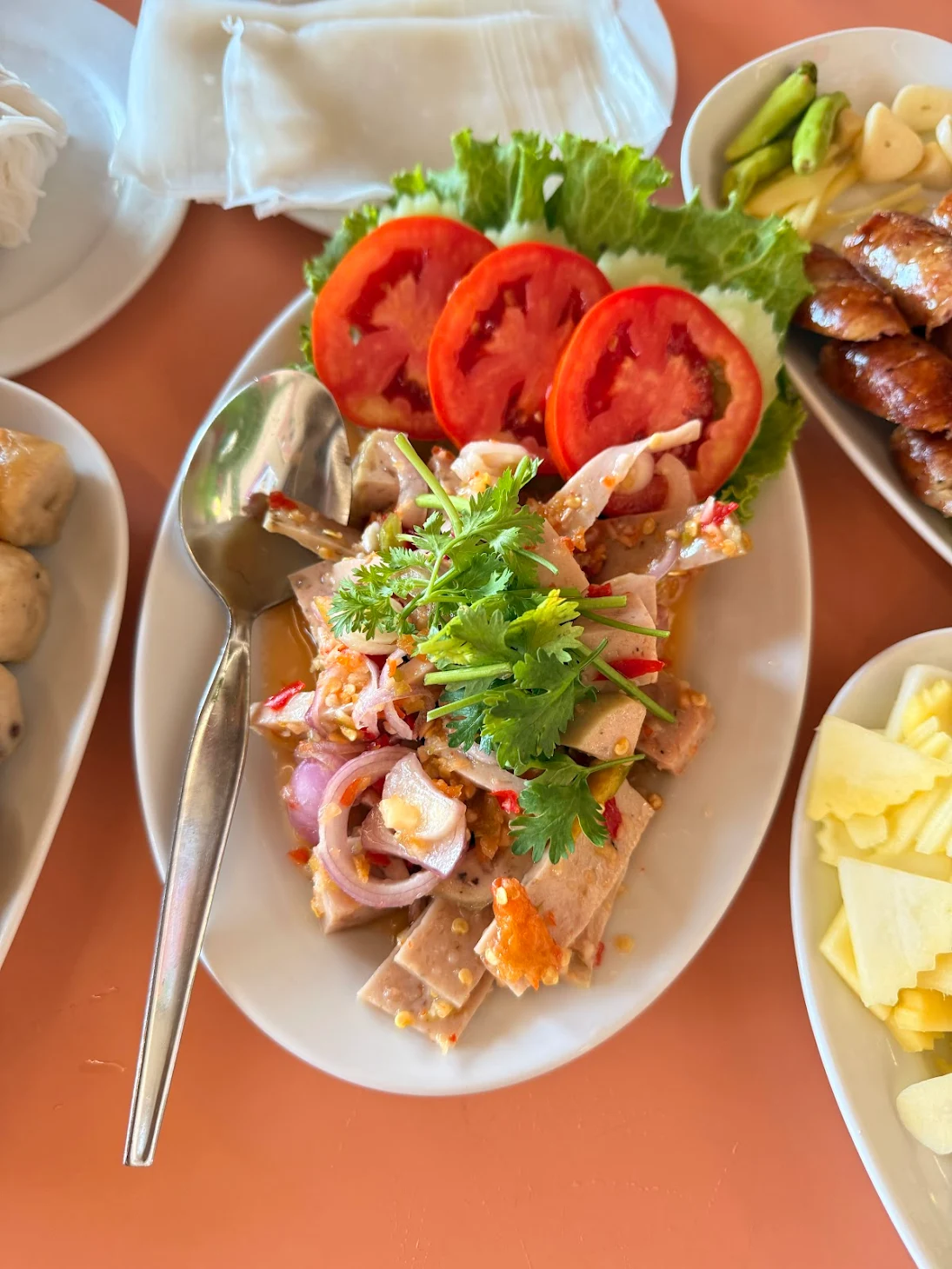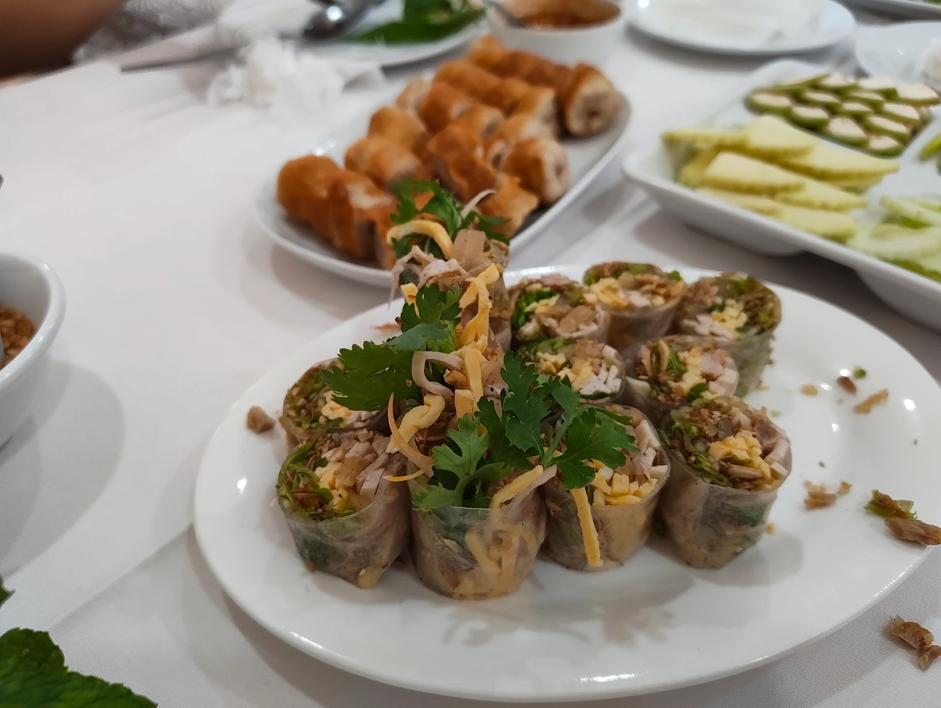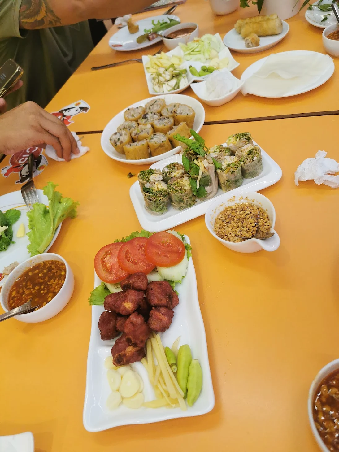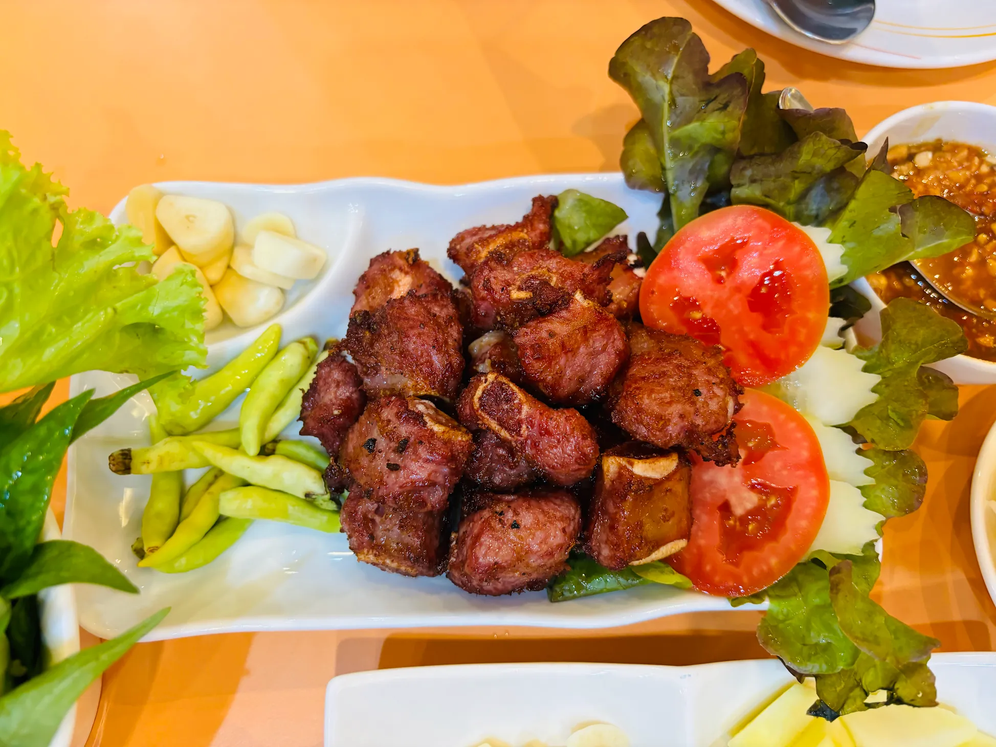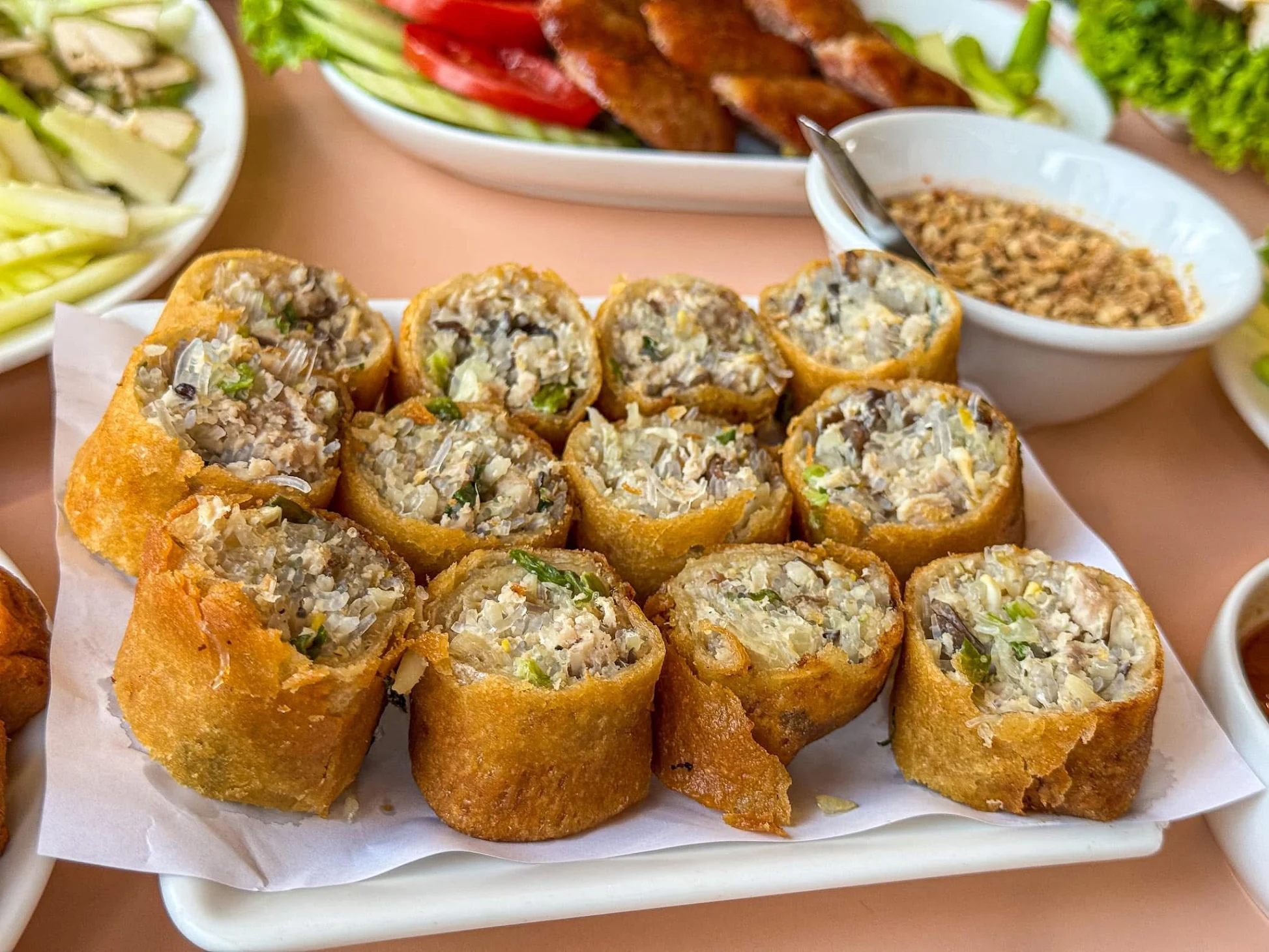 บรรยากาศอันร่มรื่น สวยงามของมนต์เสน่ห์แห่งลุ่มน้ำโขง... ที่ลูกค้าจะได้สัมผัสกับ ที่นั่งริมระเบียง ทอดยาวไปตามริมแม่น้ำโขง บรรยากาศสบายๆ เหมือนกับอยู่บ้าน ท่านจะได้ลิ้มรสแหนมเนือง และอาหารเวียดนามแสนอร่อย และบริการที่เป็นกันเอง พร้อมไปกับนั่งชมทัศนียภาพอันสวยงามของริมฝั่งโขง ที่ร้านแดงแหนมเนือง มีห้องปรับอากาศ ขนาดต่างๆ รองรับการจัดเลี้ยงเป็นหมู่คณะ และกรุ๊ปทัวร์ อีกทั้งยังมีห้องจัดเลี้ยงบรรยากาศส่วนตัว เพื่อรับรองแขกพิเศษในโอกาสต่างๆ อีกด้วย